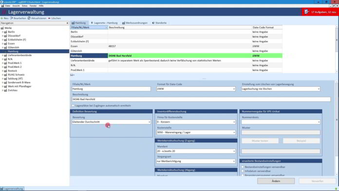 Produktbroschüre DownloadenWir überspringen mal die Standorte und schauen uns direkt die Lagerorte an. Durch die Auswahl eines Lagerorts werden im unteren Bereich die Einstellungen des Lagerortes eingeblendet.